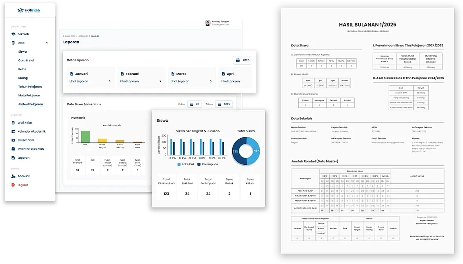 Berdasi (Basis Elektronik Data dan Sistem Informasi Sekolah) adalah sistem digital yang dirancang untuk memudahkan manajemen sekolah dalam mencatat dan mengelola data secara efisien. Dengan memanfaatkan teknologi berbasis web dan aplikasi, sistem ini menggantikan metode pencatatan tradisional berbasis kertas menjadi lebih efisien dan akurat.