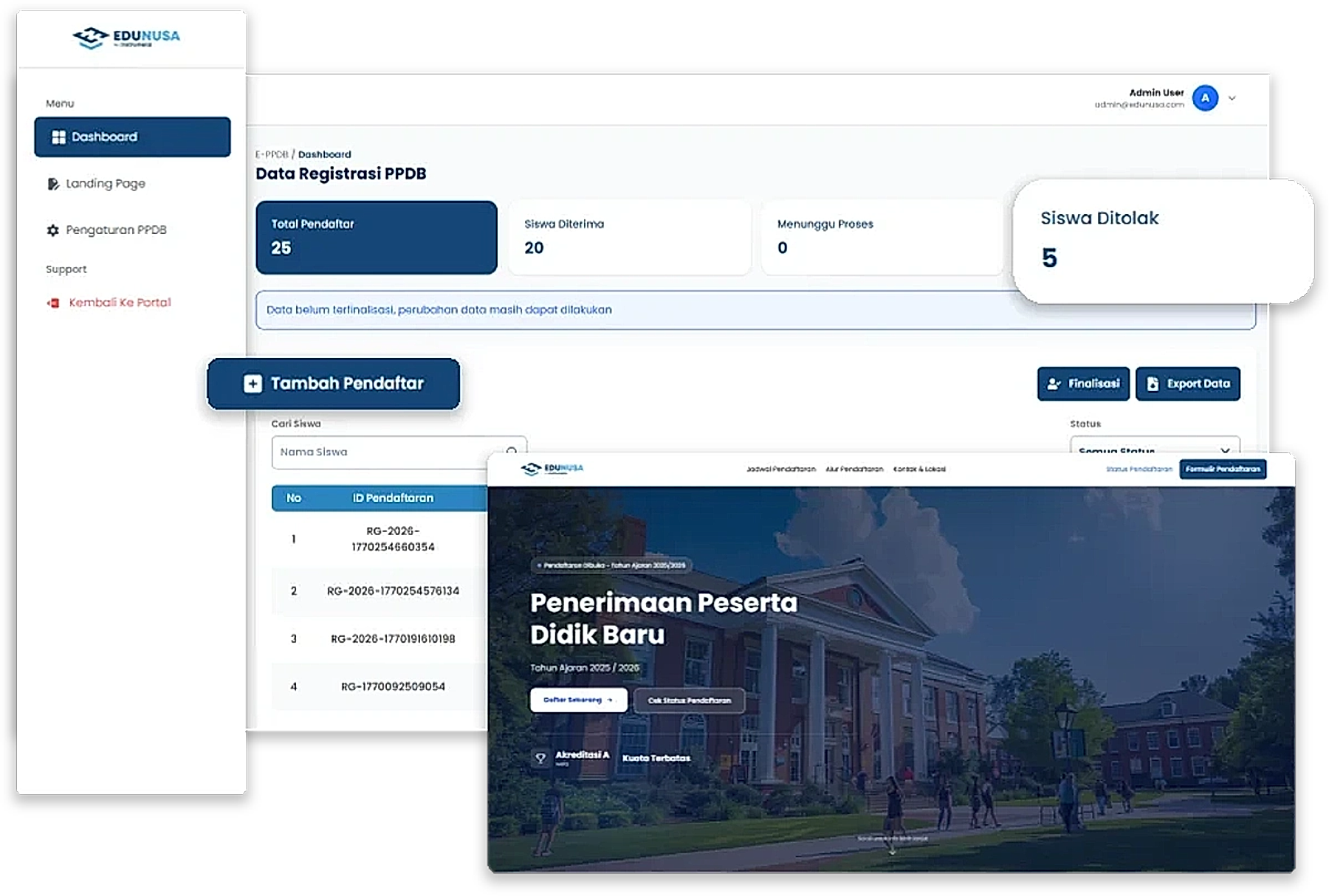 Pengelolaan Data Calon Peserta Didik, data tersimpan dengan baik dan mudah diakses oleh pihak sekolah.